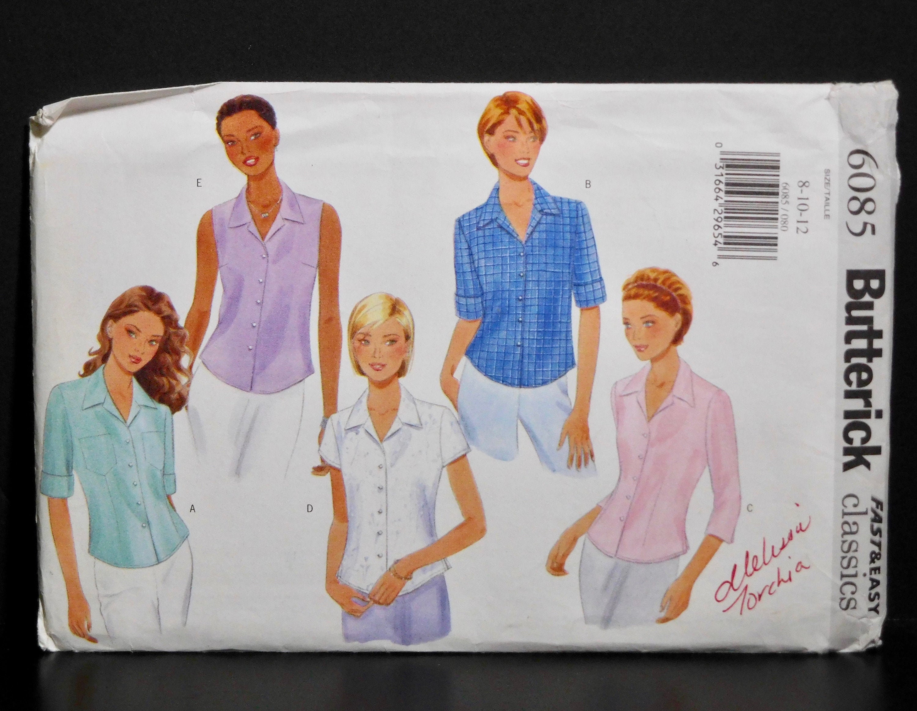 Fast Easy Misses Button Front Shirts Butterick Pattern 6085 Etsy Australia